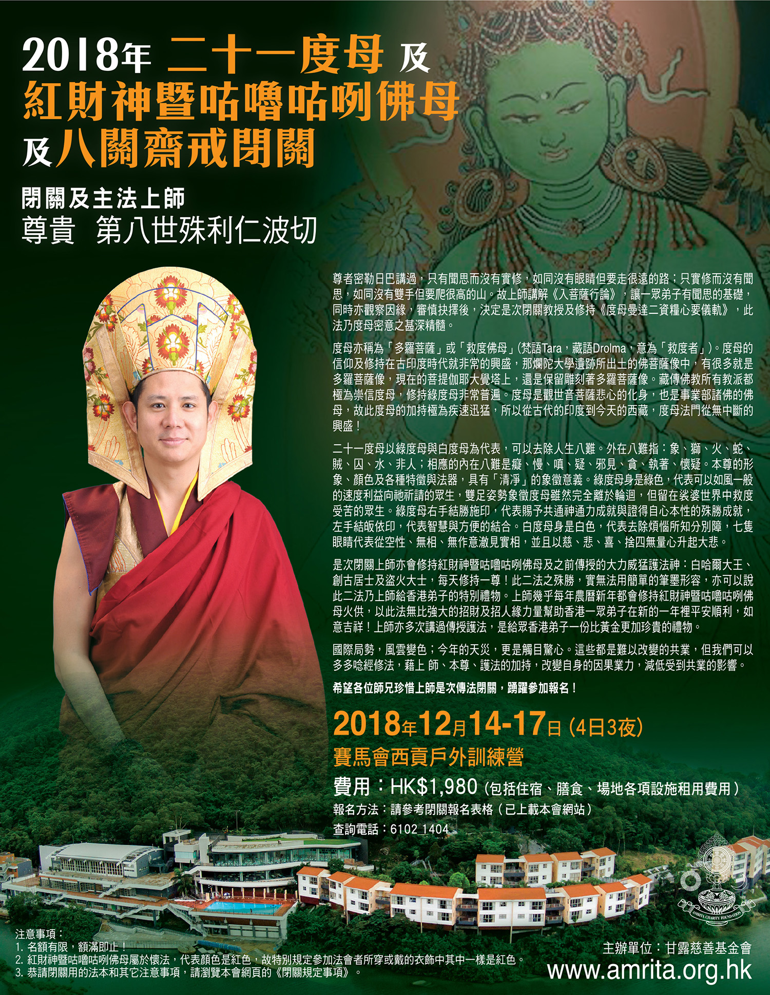 紅財神暨咕嚕咕咧佛母乃伏藏法門,非常適合現今都市生活忙碌,亦需要人緣和財運的香港人。