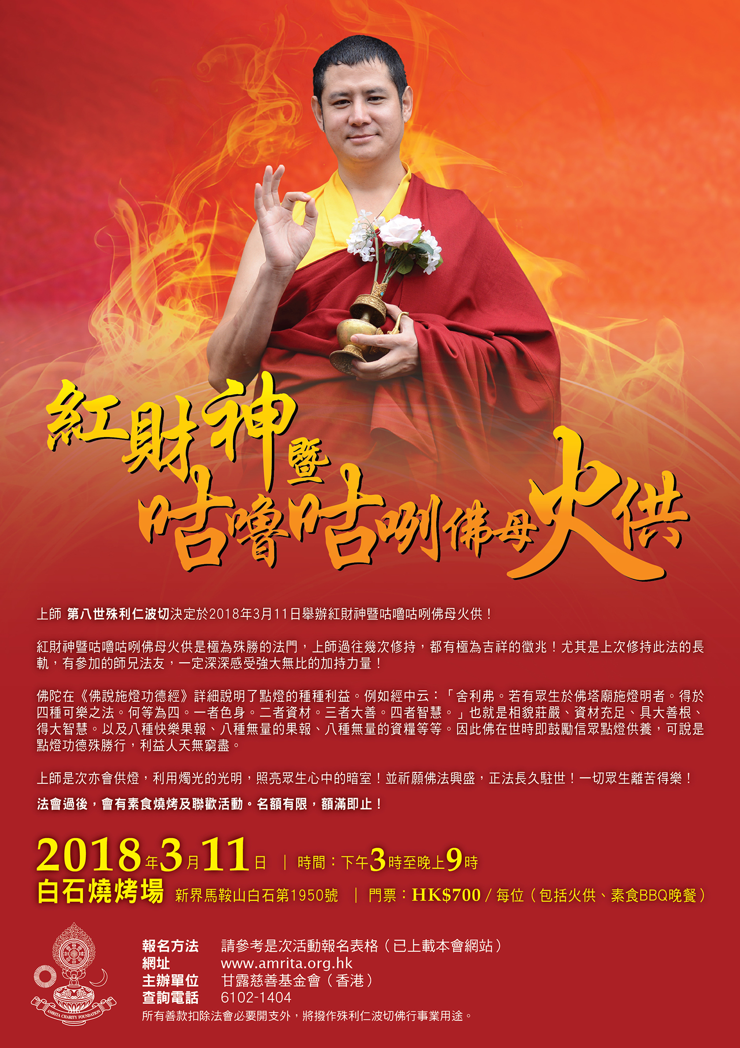 上師 第八世殊利仁波切決定於2018年3月11日舉辦紅財神暨咕嚕咕咧佛母火供!