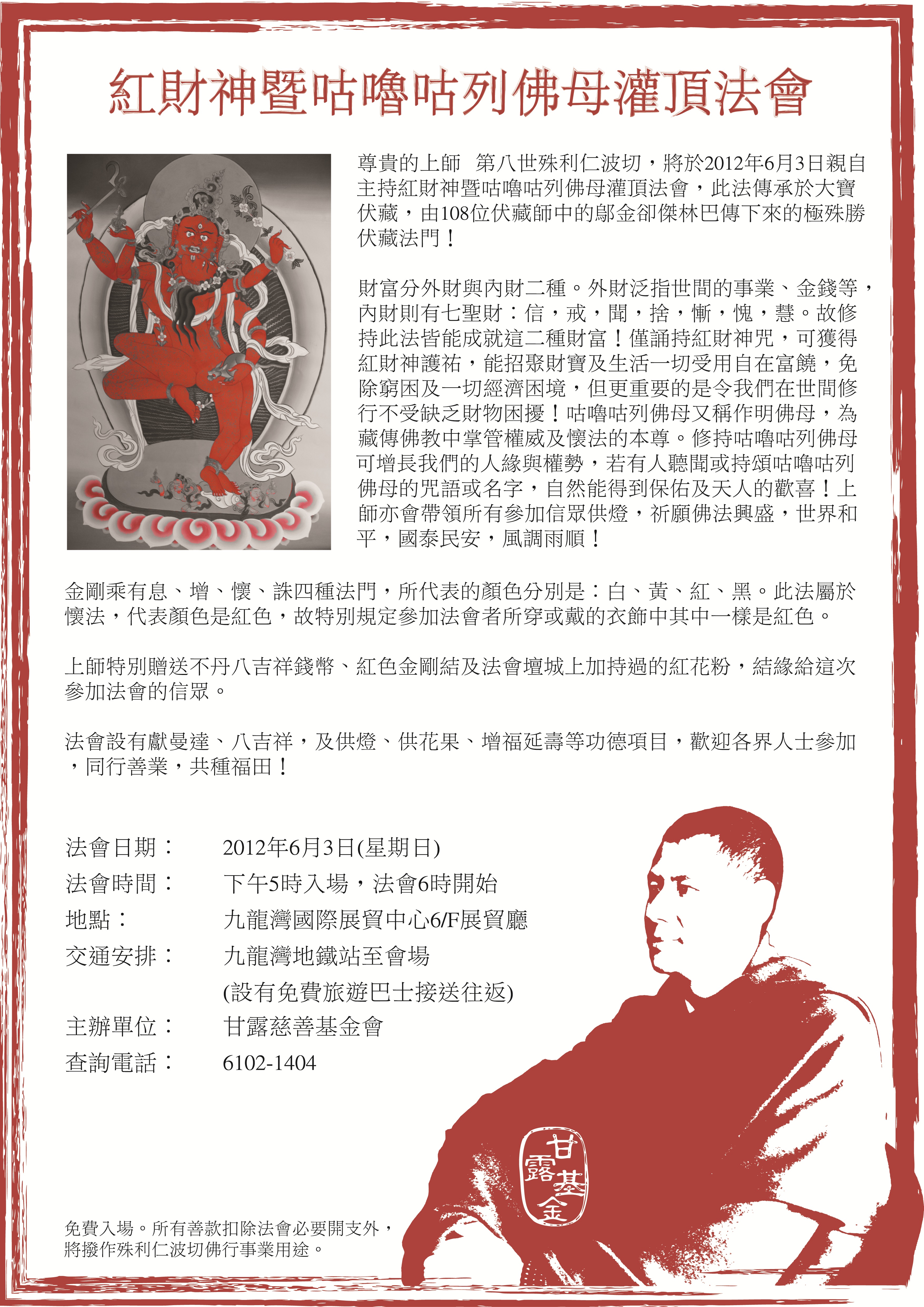 - 未受紅財神暨咕嚕咕咧佛母法灌頂者,亦可參加。