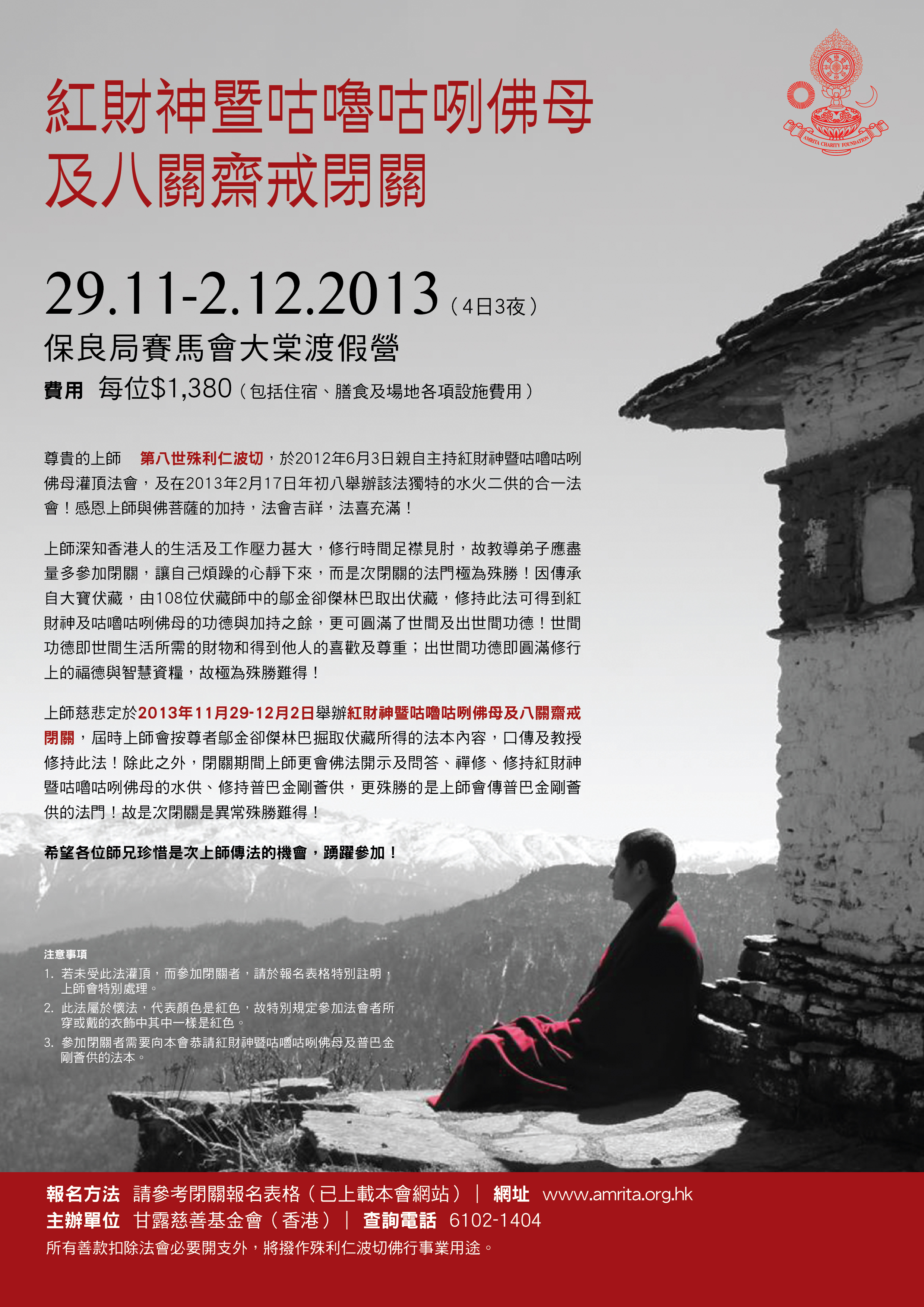 尊貴的上師 第八世殊利仁波切2013年舉辦的紅財神暨咕嚕咕咧佛母及八關齋戒閉關,殊勝非常!參加的弟子法喜充滿,經眾多弟子多次祈請下,上師決定2015年再舉行閉關!